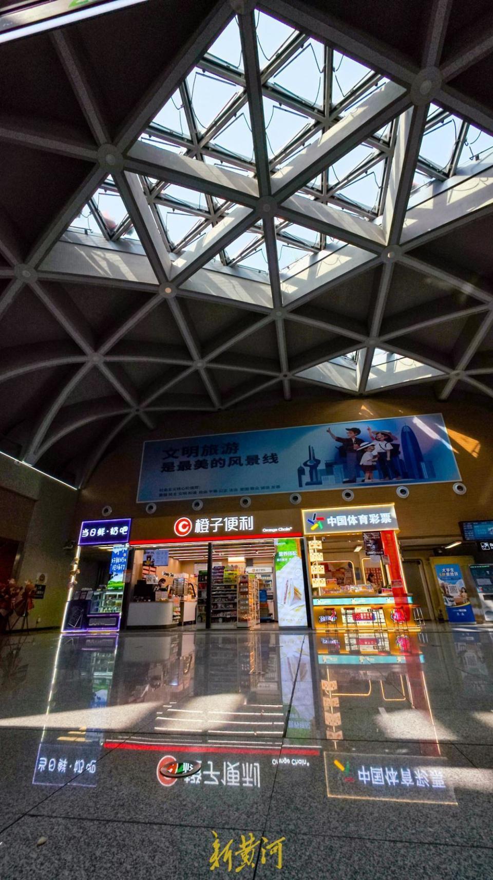 三家店铺集中布局于地下一层阳光大厅,与进出站流线有机融合,乘客在通勤途中即可便捷购物。地铁站内引入商业配套,不仅可以盘活站内空间资源,也进一步丰富了市民的出行体验,让“通勤路”变为“生活线”。